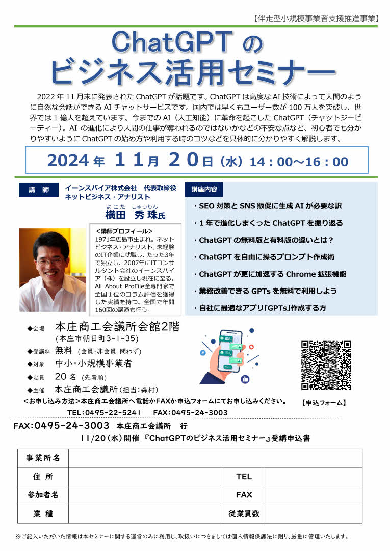 11/20開催「ChatGPTのビジネス活用セミナー」のご案内